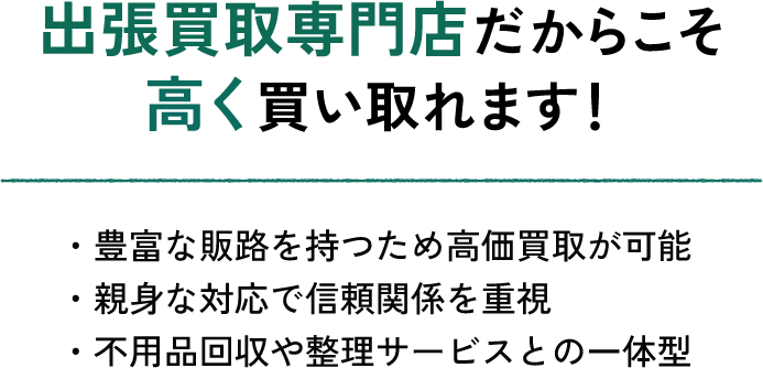 | 事業内容 | 買取・遺品整理・生前整理・不用品回収 |