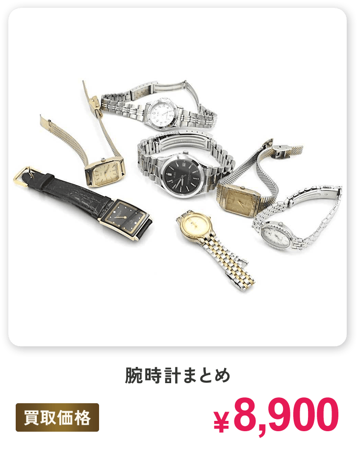 ブランドバッグ・時計・カメラ・家電・楽器・ゴルフ用品・ブランド食器・記念硬貨・金やプラチナ・骨董品・毛皮・携帯電話など、多岐にわたる品物を査定可能です。