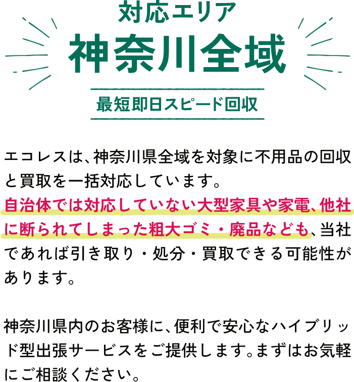 神奈川県全域・横浜市内はもちろん、近隣エリアにも対応可能です。