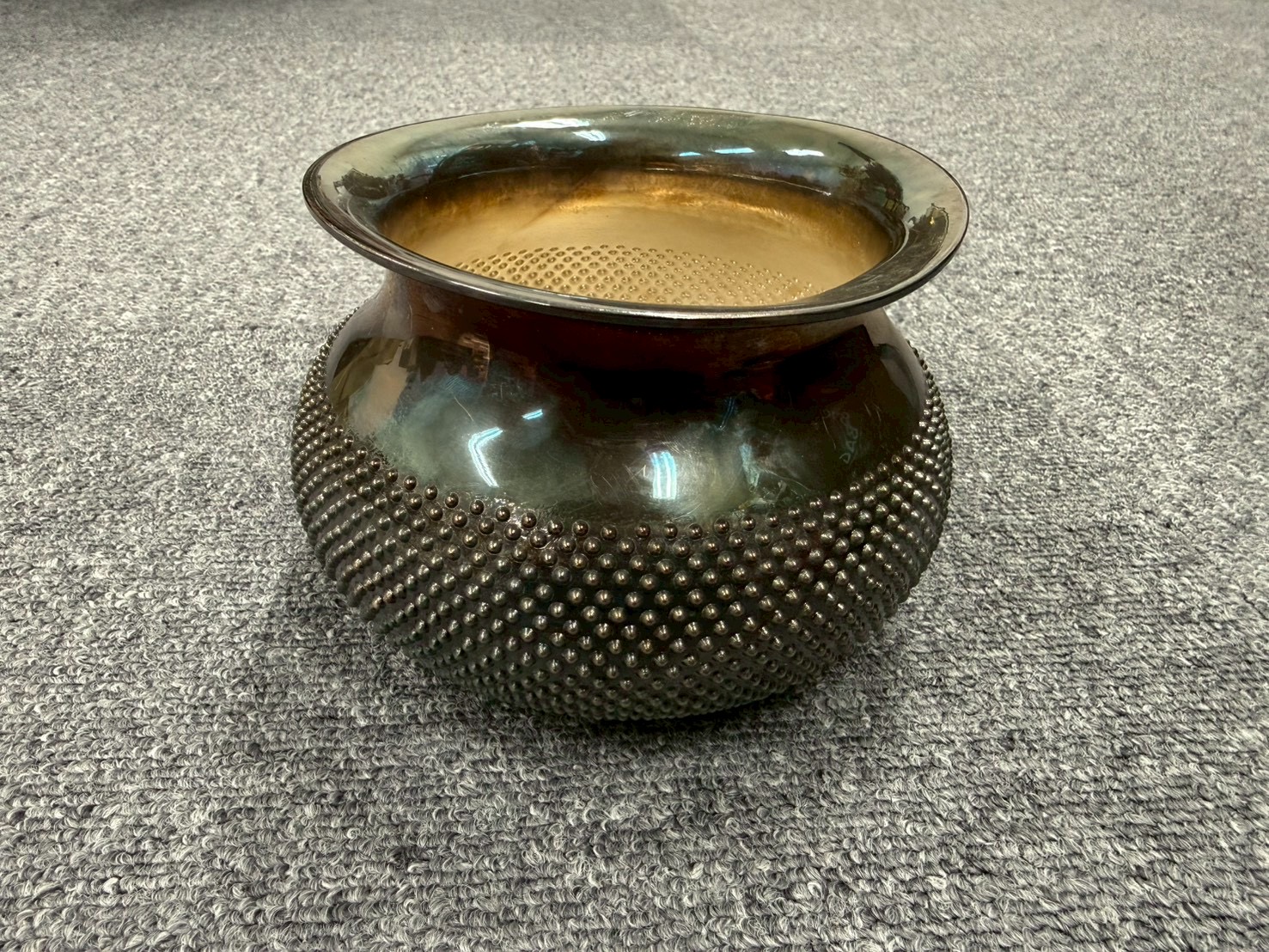 デザイン:丸みを帯びた壺型、縁が広がる形状、内側ゴールド調、外側ドット突起で立体感