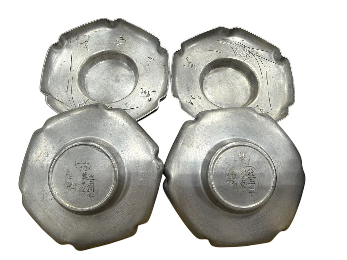 商品:銀製 八角皿4客(花形縁・彫刻入り)