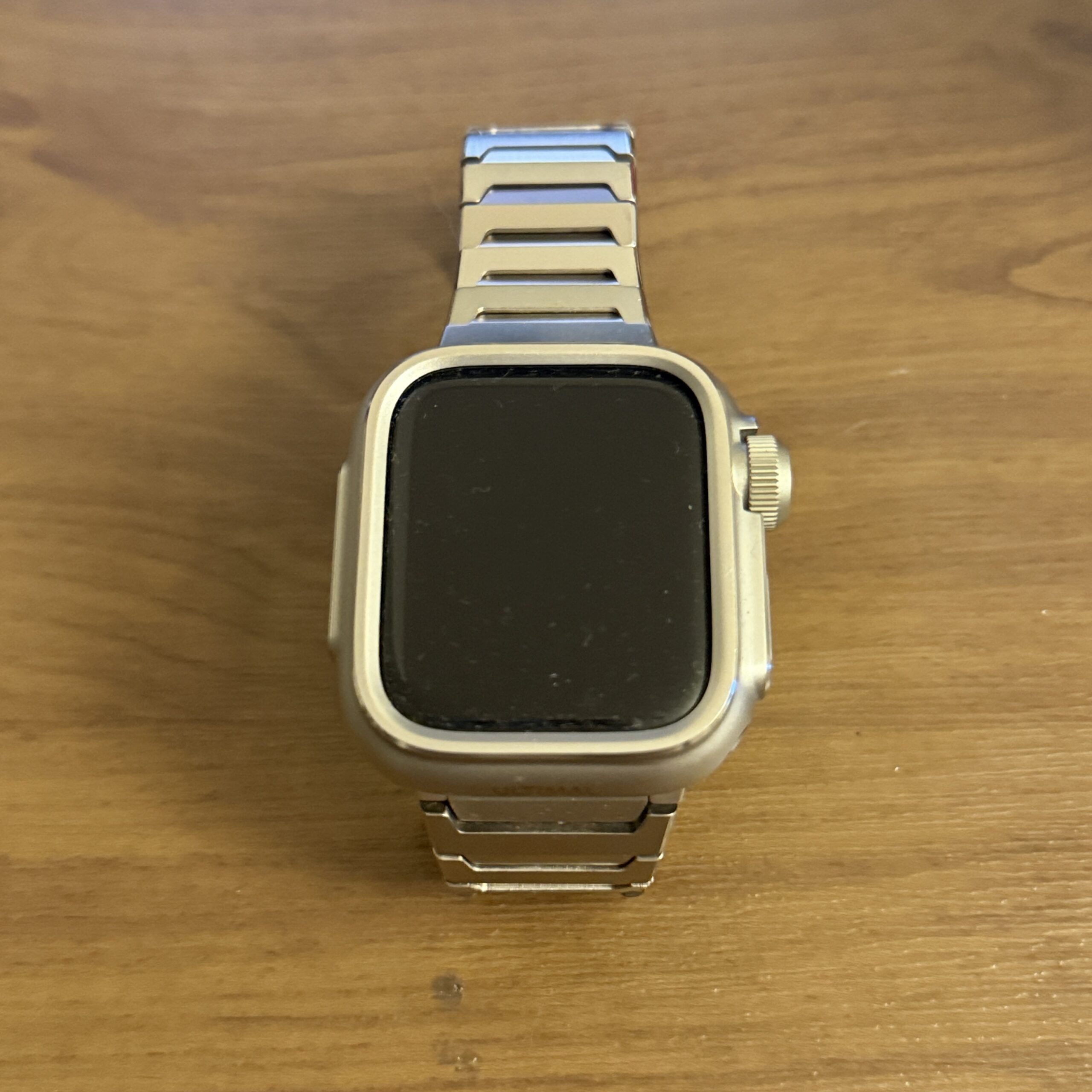 金属製のバンドが装着されたスマートウォッチ本体です。