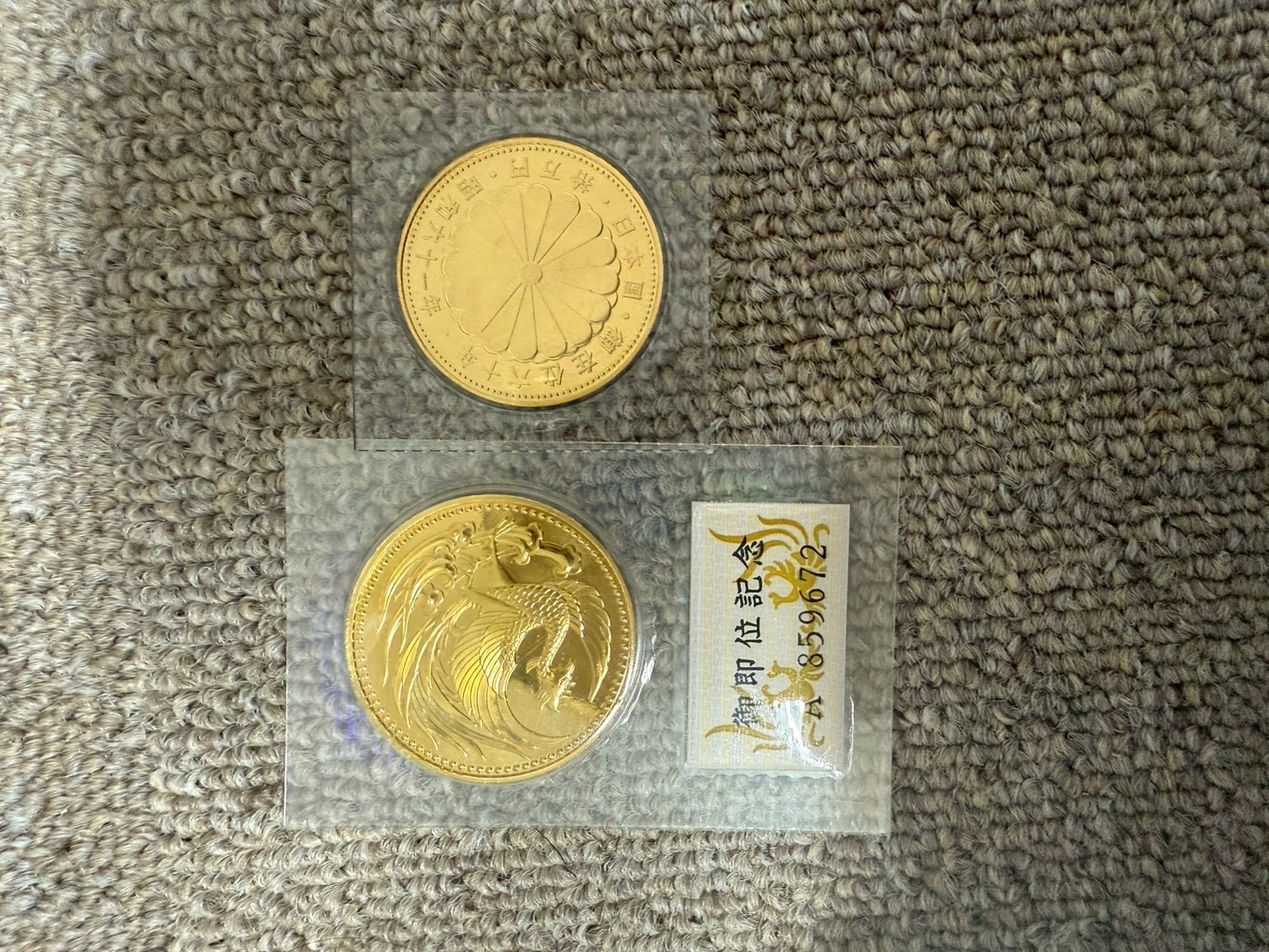 今回お買取りさせていただいた記念金貨は、どちらもパックに入った状態で保管されており、金貨表面の状態も非常に安定していました。金製品は酸化しにくい素材ではありますが、保管環境によっては細かな擦れやくすみが生じることもあります。その点、未開封に近い状態で保管されていた点は、状態確認の面でも安心材料となりました。